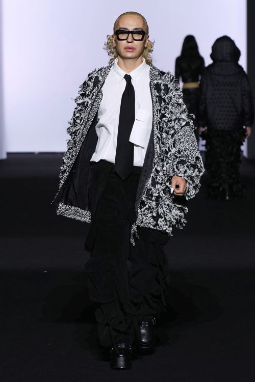 캣워크에 라이브 음악이 함께 하는 것이 새로운 일은 아니지만 음악 공연과 컬렉션이 얼마나 일체감이 있는가에 따라 관객의 반응과 평가는 달라진다. 2023 F/W 서울패션위크, 서울 컬렉션의 오프닝 쇼인 ‘얼킨’에는 독보적인 개성과 춤으로 유명한 뮤지선 지올팍이 크리스찬 곡으로 엔딩 무대를 장식했다. ‘얼킨’의 23 F/W 컬렉션 주제는 주변의 다양한 위기에 대해 무감각한 우리의 모습을 표현한 ‘안전불감증’인데 사람의 이중적인 모습과 자기반성을 담고 있는 지올팍의 노래가 여기에 더해져 얼킨 특유의 사회적 이슈에 대한 날카로운 비판과 더불어 완성도 높은 연출을 보여주었다.
