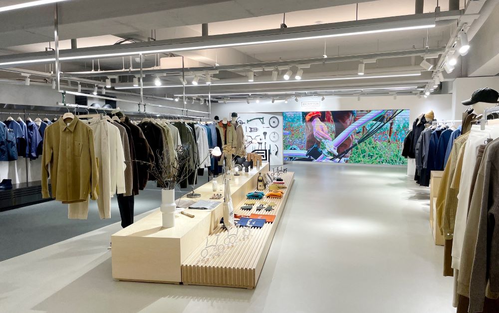 ‘브롬톤 런던’ 컨벤션 공간은 공간 양쪽을 컨템포러리 룩을 재현한 커뮤터 라인과 라이프스타일 라인으로 나눠 구성했다. 입구부터 컨벤션 공간까지 곳곳에 실제 브롬톤 자전거와 장비 등 자전거 요소를 배치해 브랜드 헤리티지를 직관적으로 느낄 수 있게 기획했다.