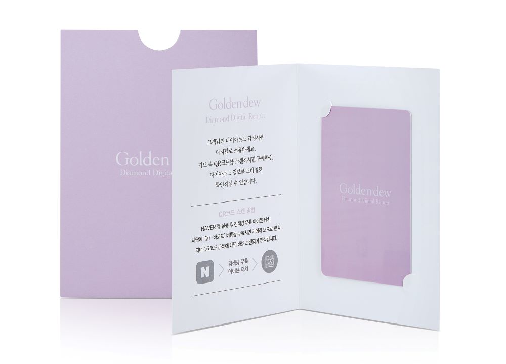 다이아몬드 디지털 감정서는 2017년 골든듀가 국내 최초로 도입한 서비스로 다이아몬드 1캐럿 이상 제품 구매 시 기존의 페이퍼 형태의 감정서와 함께 QR코드가 새겨진 디지털 감정서를 함께 제공하며 카드 속 QR코드 스캔을 통해 등급, 광채, 셰입 등 해당 다이아몬드에 대한기본 정보와 컷 및 클래리티 부분의 상세한 다이아몬드 상태를 3D 이미지로 직접 확인할 수 있는 것이 가장 큰 특징이다.