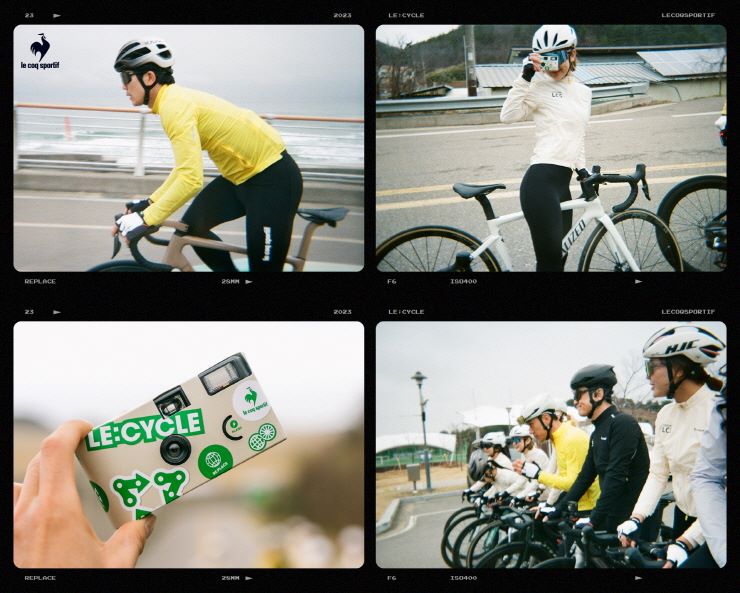 ‘르꼬끄’는 지난 3월 25일 강원도 양양에서 사이클 라이더 11인과 함께 60Km 라이딩을 함께했다. 이번 행사는 라이딩과 순환을 통해 지속가능성을 추구하는 ‘르사이클(LE; CYCLE)’ 캠페인의 일환으로 진행되었으며 참가한 라이더들은 ‘르꼬끄’의 사이클 의류를 입고 코스를 완주하며 라이딩의 순간들을 업사이클링 필름 카메라에 담았다.