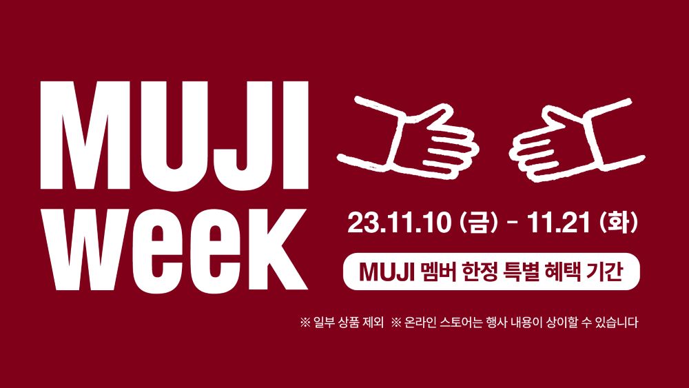무인양품 주식회사가 전 품목 10% 할인하는 연중 최대 고객 감사 행사 MUJI WEEK를 오는 11월 10일부터 11월 21일까지 진행한다.