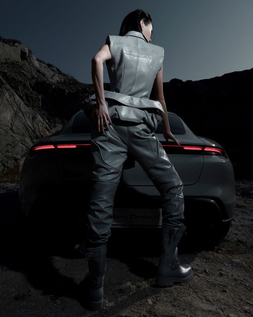 아트 피스는 타이칸을 연상케 하는 디테일이 더해진 바이커 재킷, 재킷 베스트, 점프슈트, 팬츠, 슈즈, 백 등으로 구성했다. 특히 바이커 재킷의 패턴은 타이칸의 익스테리어에서 돋보이는 유려한 곡선의 실루엣을 살렸다. 점프슈트는 레이싱복에서 착안한 디자인을 적용해 모터스포츠에 기반을 둔 포르쉐의 정체성에 준지의 모던하고 럭셔리한 감성을 접목시켰다.