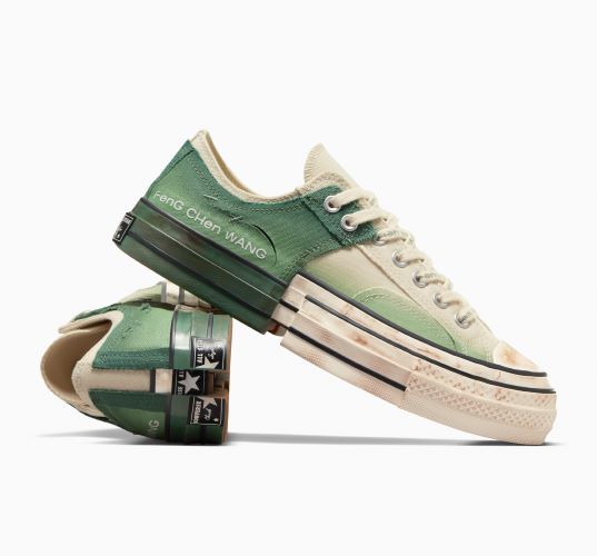 ‘컨버스 X 펑첸왕’이 선보인 두 가지 스니커즈를 하나로 결합한 투인원 척70 오리지널 디자인은 뉴욕과 상하이에서 열린 펑첸왕의 ‘My Half’ 컬렉션에서 처음 공개된 후 2019년 처음 출시되며 많은 관심을 받았다. 이번 협업은 투인원 척 70을 새로운 디자인의 로우탑 에디션으로 재해석하여 선보인다.