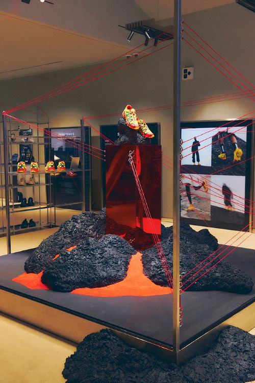 또한 오는 3월 5일 출시 예정인 ‘살로몬’ 최초의 트레일화 스피드 크로스 3 모델의 OG 컬러를 기념해 ‘태초의 순간, 본질로의 회귀’라는 컨셉에 맞추어 제품의 붉은색 유황 컬러와 퀵 레이스 모티브를 인테리어 요소에 활용한 쇼케이스를 만나볼 수 있다.