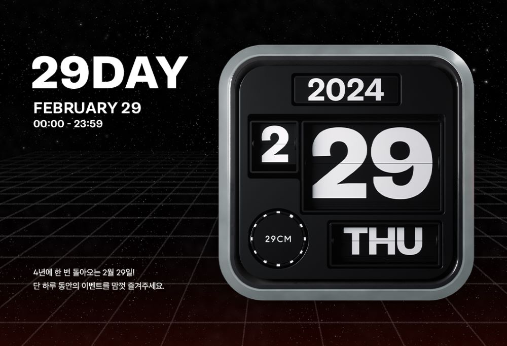 29CM 관계자는 “4년에 한 번 돌아오는 2월 29일을 맞아 29CM 고객만을 위한 재미있는 이벤트를 기획하고자 했다”며 “평소 눈여겨보았던 제품을 29일 하루 동안 특별한 혜택과 함께 만나는 기회가 되기를 바란다”고 말했다.