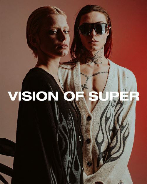 록펑크 음악과 스트릿 문화에서 영감을 받은 ‘비전오브슈퍼’는 2018년 Fashion, Urban Subculture, Music의 혼합을 목표로 Dario Pozzi에 의해 탄생한 프로젝트 브랜드다. 콘서트 무대에서 포옹을 나누는 것처럼 ‘비전오브슈퍼’의 패션과 음악은 서로 소통하는 존재이며 음악은 브랜드 세계관의 한 부분으로 창조성을 표현하는 중요한 역할이다.