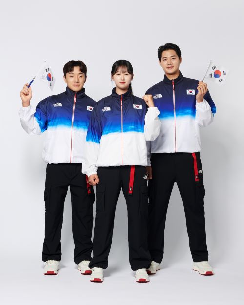 ‘노스페이스’는 시상대 위 영광의 순간에 대한민국 국가대표 선수들을 빛내줄 시상용 단복을 비롯해 편안하면서 뛰어난 기능성을 갖춘 일상복(후드 재킷, 긴팔티, 반팔티, 폴로티, 반바지 등)과 선수단 장비(운동화, 슬라이드, 캡, 버킷햇, 양말, 백팩, 숄더백 및 여행 가방 등) 등 총 23개 품목으로 구성된 팀코리아 공식 단복을 지원한다. 이날 단복 시연회에는 오상욱 선수(펜싱), 이준환 선수(유도), 임시현 선수(양궁) 및 김수지 선수(다이빙)가 모델로 직접 등장하여 공식 단복을 선보였다.