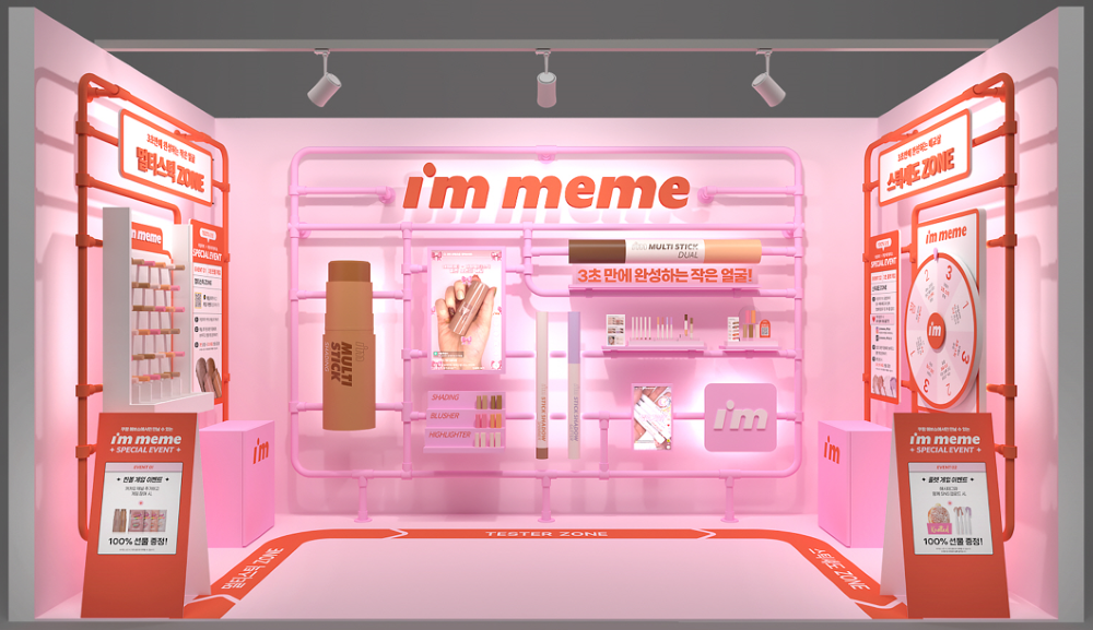 ‘아임미미’의 부스는 ‘3초 만에 완성하는 메이크업’이라는 콘셉트로 구성돼 있으며 ‘3초 룰렛’, ‘3초 핀볼’ 등 MZ세대 고객의 참여와 흥미를 유도할 수 있는 다채로운 이벤트존으로 이뤄져 있다.