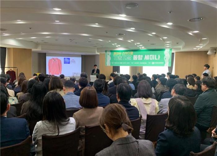한국섬유산업연합회(회장 최병오)가 지난 4월 16일 섬유센터에서 섬유패션산업의 지속가능한 순환경제로의 전환을 지원하기 위한 폐섬유 리사이클 기술개발 동향 세미나를 개최하였다.