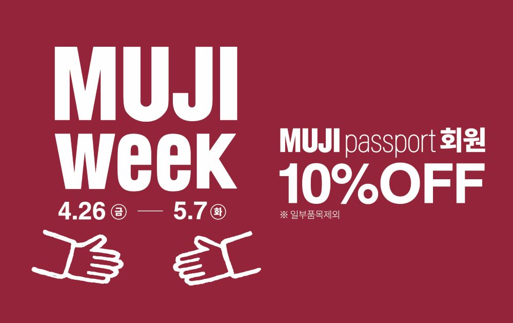 무인양품 주식회사가 전 품목 10% 할인하는 연중 최대 고객 감사 행사 MUJI WEEK를 오는 4월 26일부터 5월 7일까지 진행한다.