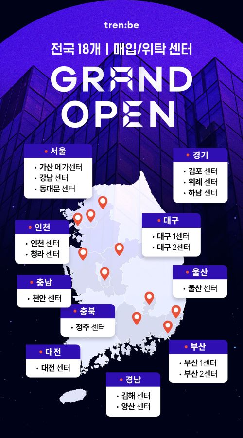 트렌비가 전국에 12개의 매입/위탁센터를 새롭게 오픈했다.