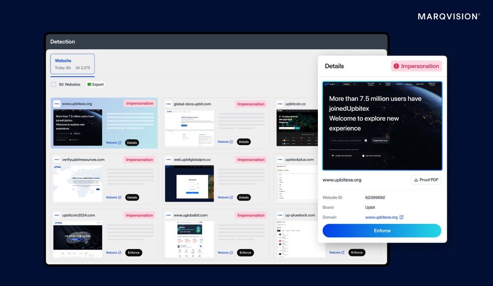 블록체인 및 핀테크 전문기업 두나무가 운영중인 국내 대표 가상 자산 거래소 업비트의 경우 도메인 주소를 교묘하게 차용해 거래를 유도하는 가짜 홈페이지를 구축하거나 임직원을 사칭한 투자 리딩방 등 금융사기 사례가 발생함에 따라 이용자에게 각별한 주의를 당부해왔다. 업비트는 최근 마크비전과의 협업을 통해 이와 같은 사칭 사례들을 탐지하고 신속하게 제거해 안전한 투자자 보호 환경 조성에 힘쓰고 있다. 또한 프랑스 럭셔리 브랜드의 한국법인 바카라 코리아도 마크비전이 제공하는 UDRP 지원 서비스를 통해 웹사이트 도메인 사칭 문제를 신속하게 해결할 수 있었다.