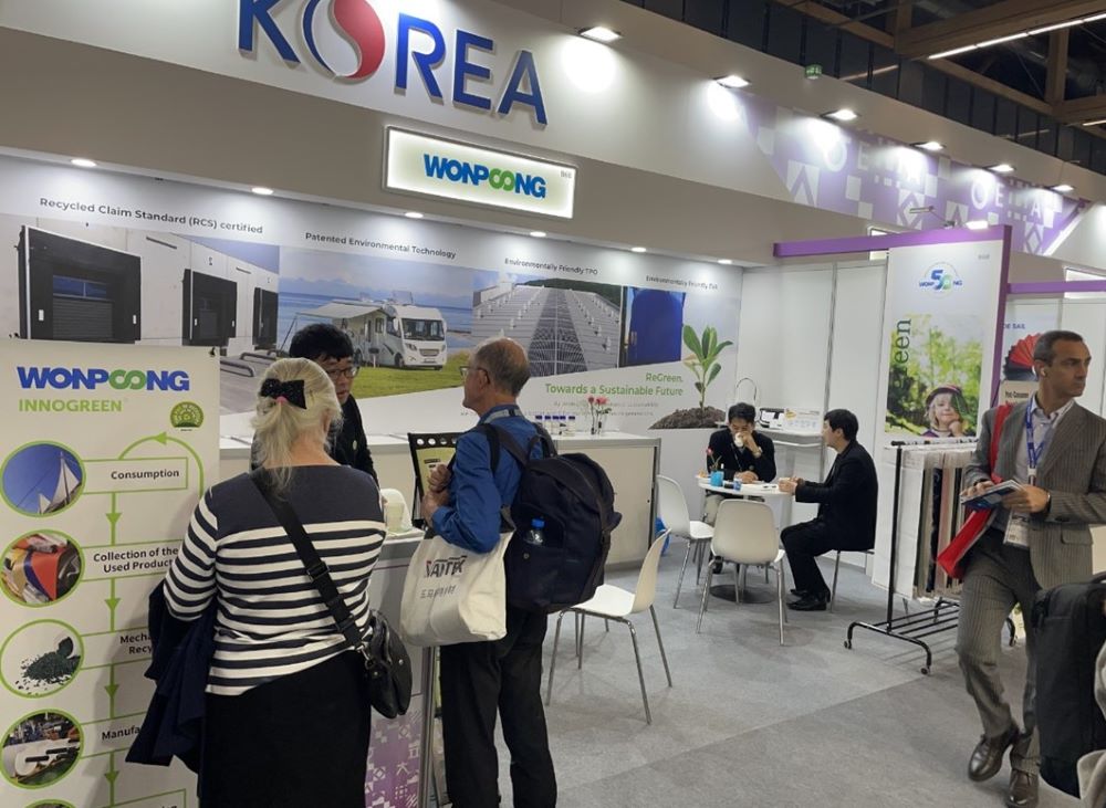 한국관에는 원풍, 대영합섬, 동진상사, 영풍필텍스 등 18개사가 한국관을 구성하였고 타포린, 워크웨어, 바이오 매스, 기능성 리사이클 소재를 비롯해 염색시험기기, 내수압 시험기, 자동 코팅기를 선보였다.