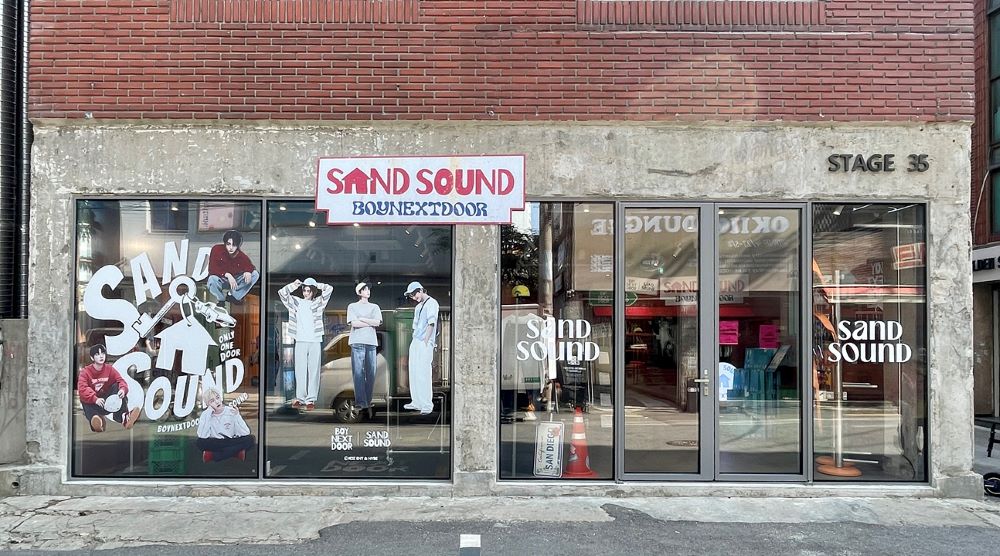 특히 ‘샌드사운드’는 독창적인 브랜드 아이덴티티를 바탕으로 보이넥스트도어 특유의 색을 입혀 이번 팝업스토어를 차별화된 체험형 공간으로 꾸몄다. 봄여름 시즌 테마인 뉴멕시코를 배경으로 마치 로드트립을 가는 듯한 느낌을 주기 위해 내부에 도로를 구현했다. 매장 한편에는 폰샵(전당포)을 배치해 이국적인 분위기를 냈다. 또한 보이넥스트도어를 상징하는 6개의 문으로 이루어진 포토존을 마련했다. 각각의 문을 열어 멤버들의 개성이 담긴 화보와 함께 사진을 찍을 수 있다.