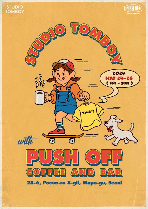 ‘스튜디오 톰보이’는 이달 26일까지 망원동에 위치한 ‘푸쉬오프 커피앤바’에서 ‘톰보이 티셔츠’를 테마로 한 브랜드 체험 공간을 운영한다.