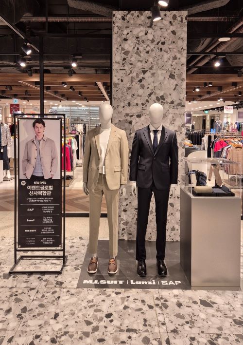 신사 복합관 의류 브랜드는 ‘엠아이수트’와 ‘란찌’, ‘샙’ 등 3개의 브랜드로 클래식 수트부터 비즈니스 캐주얼까지 폭넓게 구성했다.