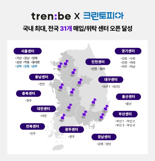 트렌비는 이번 협업을 통해 전국 각지에 31개의 매입/위탁 센터를 보유하게 되었으며 이는 국내 최대 규모다.