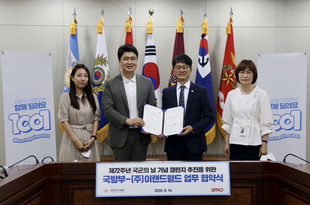 이랜드월드(대표 최운식)가 올해로 72주년을 맞은 국군의 날을 기념해 국방부와 함께하는 ‘스파오’의 대국민 챌린지 ‘마음까지 따뜻하게, 함께 달려요 1001’을 열기로 하고 업무협약식을 진행했다.