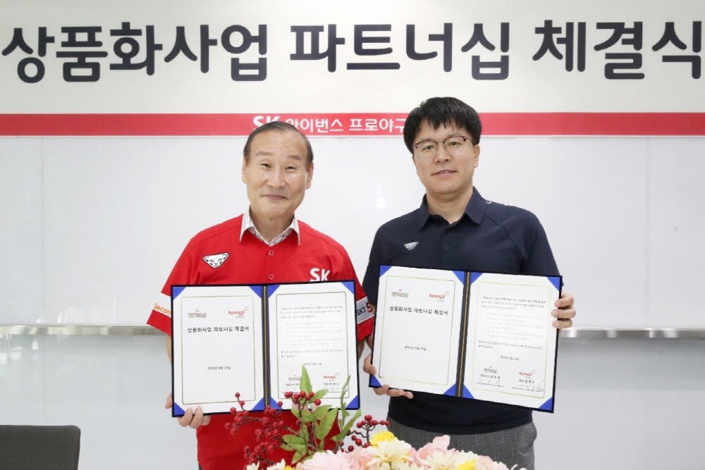 형지엘리트(대표 최병오)가 지난 23일 SK행복드림구장에서 SK와이번스와 상품화사업 파트너십 체결식을 진행했다.