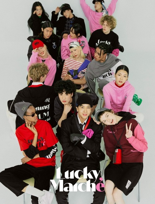 럭키마르쉐는 ‘마켓에서 행운을 사다’라는 뜻으로 ‘Keep on Smiling, You are Amazing, Think Happy’ 이 세 가지 슬로건을 긍정의 바이브로 내세운 스토리텔링 중심의 브랜드로 풀어갈 계획이다. 한편 힙합 레이블 그루블린의 대표이자 2020년 각종 분야에서 블루칩으로 떠오르고 있는 라비를 모델로 기용, 젊은 감성의 상품으로 고객과 소통한다.