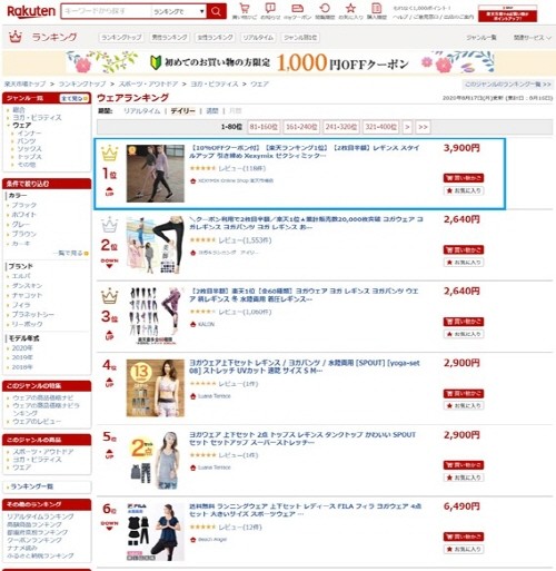 ‘젝시믹스’가 일본 최대 온라인 쇼핑몰 라쿠텐 입점 3개월만에 요가웨어 카테고리 1위에 올랐다.