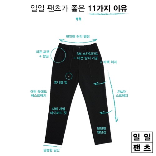 깔끔하고 심플한 디자인은 일상생활에서부터 특별한 순간까지 다양한 스타일링이 가능하다. 허벅지에서 밑단까지 깔끔하게 떨어지는 테이퍼드 핏으로 어떤 체형에도 멋스럽게 입을 수 있다. 단정함을 고려한 밑단 넓이로 바람이 불어도 펄럭거리지 않으며 어떤 상황에도 정갈한 느낌의 핏을 선보인다.