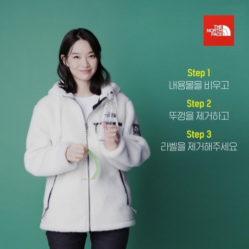 ‘노스페이스’는 국내 수거 페트병의 낮은 재활용률을 개선하는데 조금이나마 기여하고자 작년부터 신민아와 소지섭 등 브랜드 홍보대사들의 캠페인 동영상을 통해 ‘올바른 페트병 분리배출법’을 안내하며 친환경 가치 전달에 앞장서 오고 있다.
