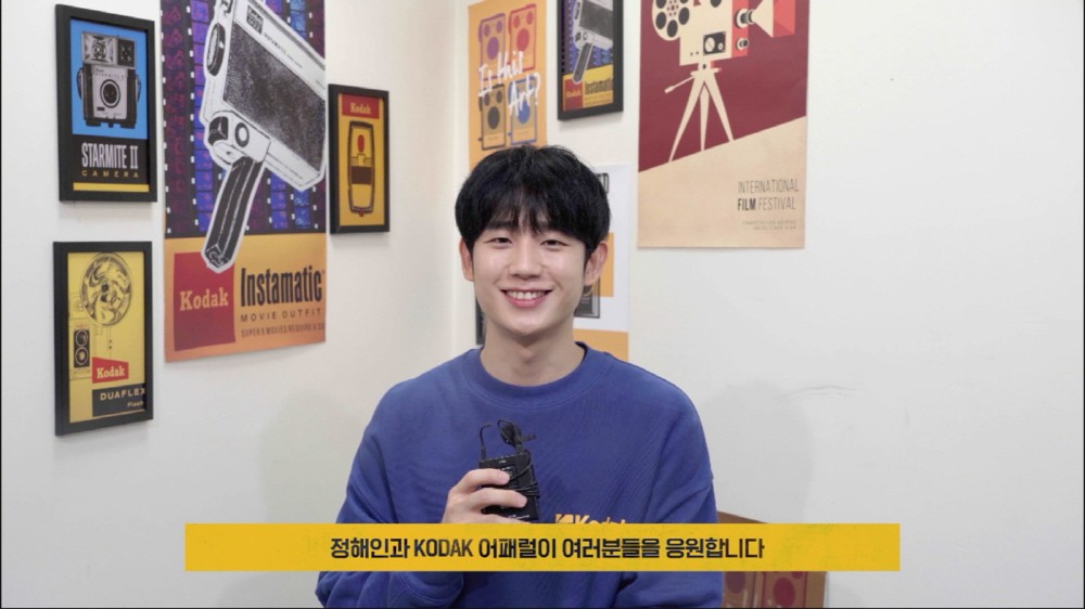 영상에서 정해인은 경쾌한 느낌의 코닥 맨투맨 티셔츠를 입고 샛노란 바탕에 빨강 코닥 로고에 대한 추억을 얘기하며 “차세대 아티스트 발굴을 위한 위한 이번 행사에 많은 참여를 바란다. 마음 속에만 품고 있던 상상을 펼쳐달라”고 말했다.
