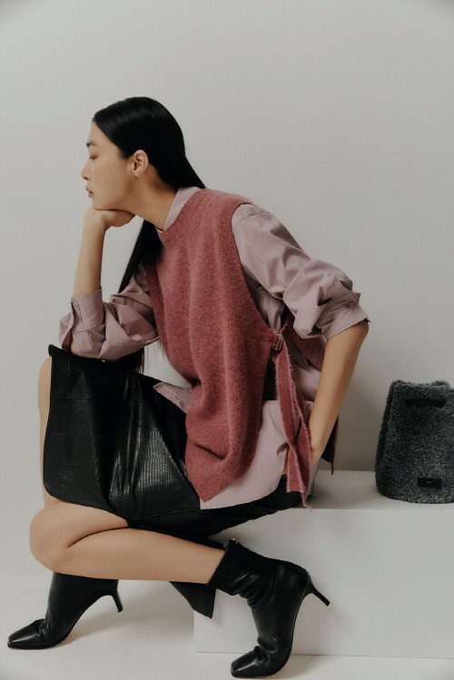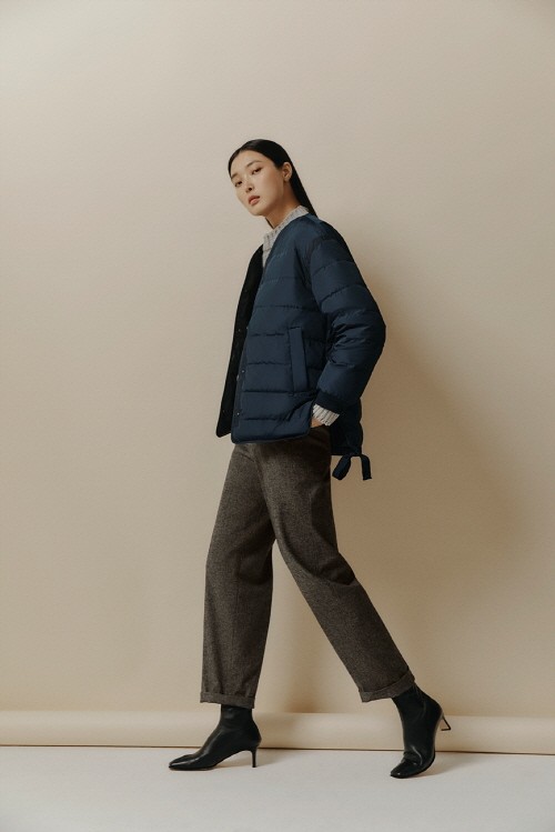 캐시미어 혼방 소재와 코쿤 실루엣을 적용한 핸드메이드 코트, 드로스트링 디테일의 리버서블 초경량 구스다운 점퍼, 오렌지/블루 체크 패턴이 포인트로 들어간 더블 버튼 재킷, 핑크 컬러의 앙고라 혼방 베스트, 아우터로도 연출 가능한 오픈 칼라 셔츠 원피스 등을 선보였다.