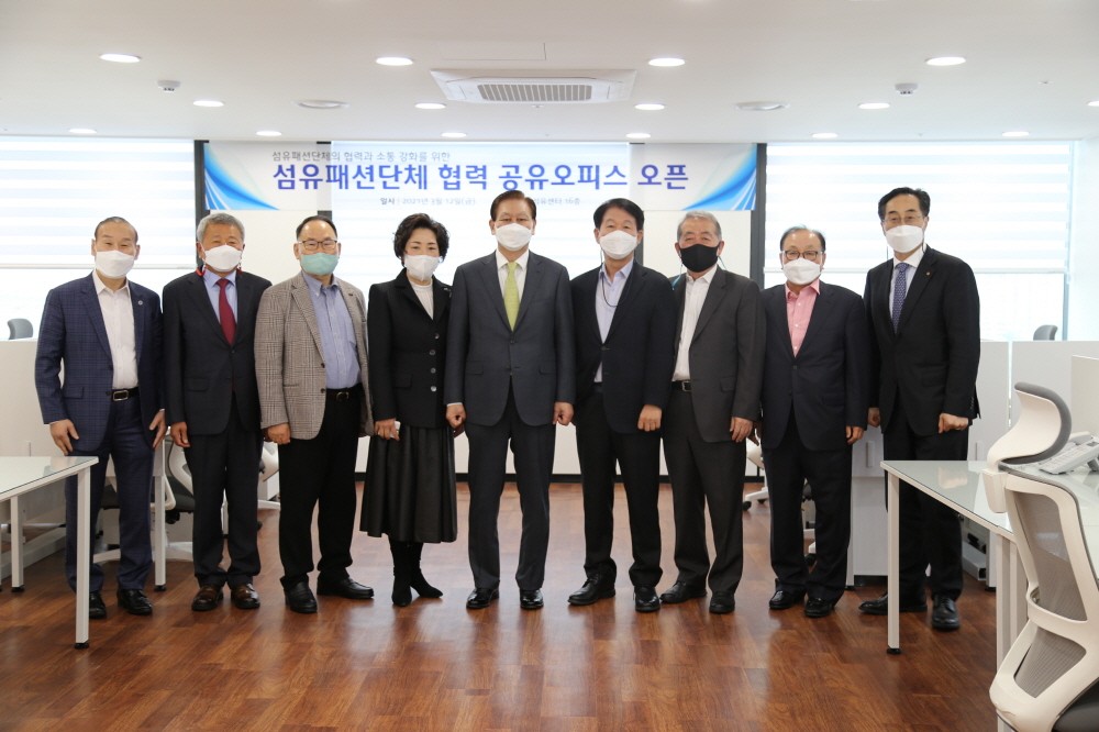한국섬유산업연합회(회장 이상운)가 3월 12일 섬유센터 16층에 전용면적 148㎡(약 45평) 규모의 섬유패션단체 협력 공유 오피스를 오픈했다.