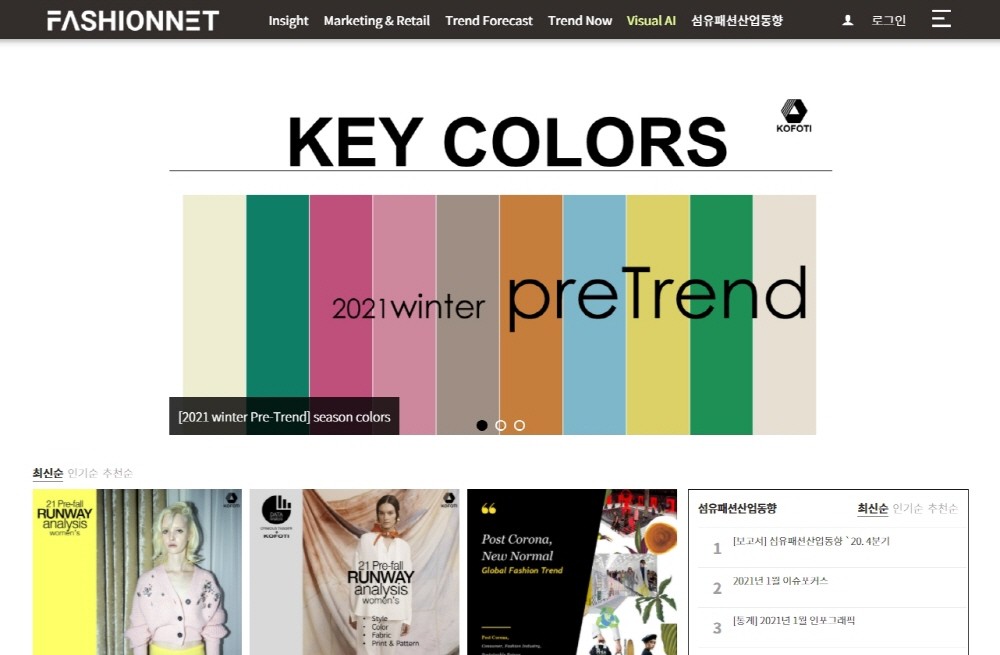 2020년 한 해 동안 패션넷 이용자들을 대상으로 한 설문 조사에서 데이터 기반 정보에 대한 만족도가 상대적으로 높게 나타났다. 특히 국내에서 처음으로 시도한 AI 기반 트렌드 분석 리포트는 타 콘텐츠에 비해 건당 뷰수가 높은 것으로 나타났다.