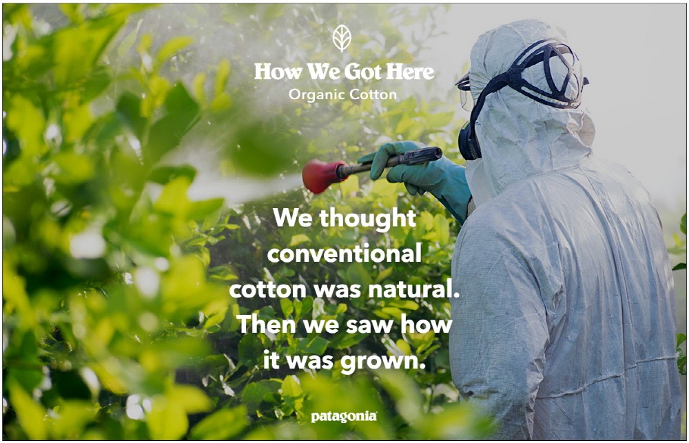 메인 영상 ‘유기농 면’ 편은 파타고니아가 기존의 일반 면 소재를 유기농 면으로 교체하게 된 계기를 배경으로 산업 기술과 유해한 화학 물질로 생산된 의류가 인간은 물론 지구 건강에 치명적인 영향을 초래한다는 경각심을 전한다.