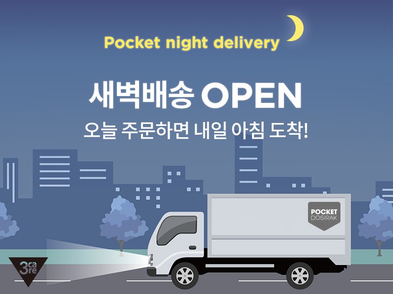 다이어트 식품(HMR) 제조판매 기업 쓰리케어코리아는 오후 4시 30분 이전 제품 주문 시 다음 날 새벽 7시 전에 배달되는 새벽 배송 서비스를 도입한다.