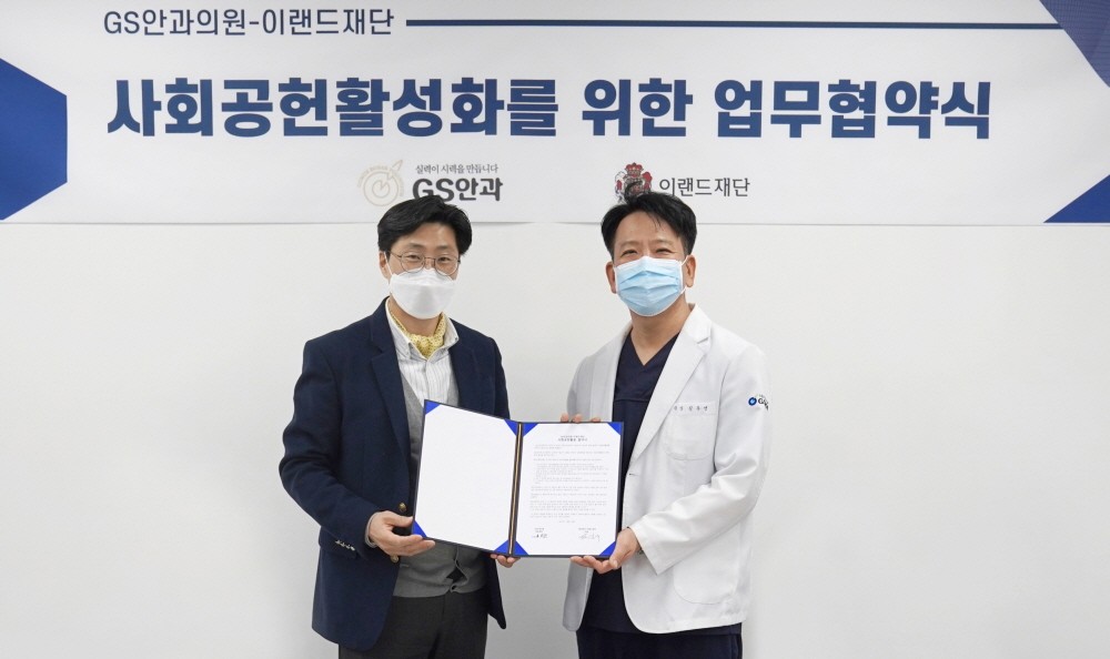 이랜드재단(대표 정재철)이 GS안과의원(대표원장 김무연)과 사회공헌활성화를 위한 업무협약을 진행했다.