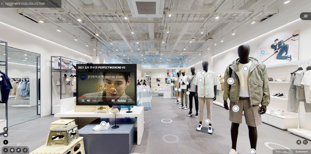 먼저 맨즈 라이프스타일 브랜드 ‘티아이포맨’의 VR 스토어는 21SS시즌 캠페인의 테마인 스테이케이션에 어울리는 호캉스 & 캠핑 컨셉의 밝고 건강한 분위기의 음악과 매장 인테리어로 관심을 집중시키며 VR스토어 내의 강렬한 컬러감과 스타일이 돋보이는 ‘티아이포맨’의 컬렉션 제품들을 한 눈에 볼 수 있다.