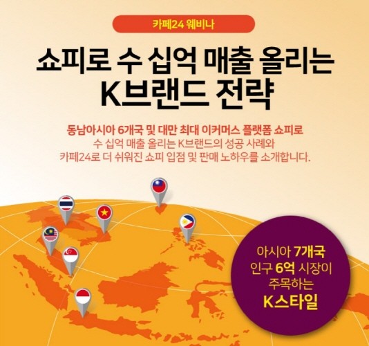 카페24(대표 이재석)가 오는 13일 오후 2시 ‘쇼피와 함께하는 K브랜드 전략’이라는 주제의 웨비나를 개최한다.