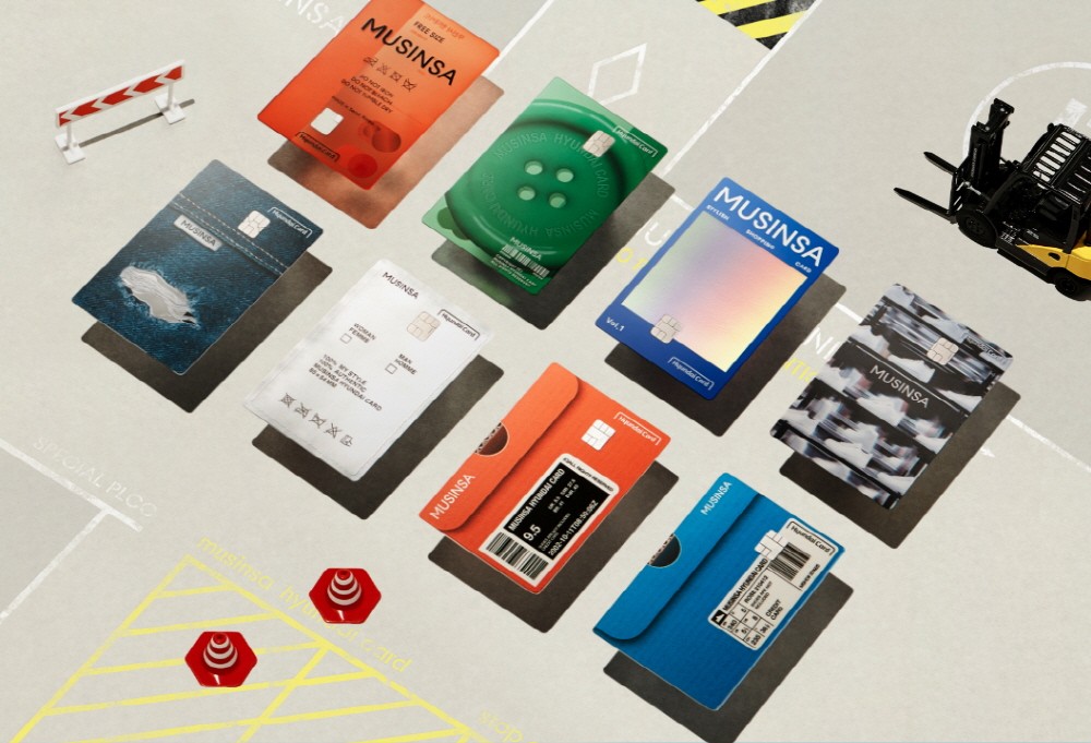 카드 디자인은 패션 아이템과 무신사 아이덴티티를 결합한 8가지 스타일로 선보인다. 무신사에서 발행하는 패션 매거진 표지, 한정판 스니커즈, 데님, 단추, 의류 라벨 이미지 등을 카드 디자인에 적용했다.