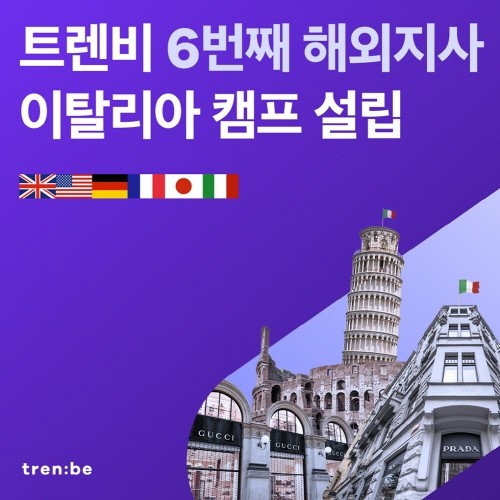트렌비의 이탈리아 캠프는 영국, 독일, 미국, 일본, 프랑스에 이은 6번째 해외지사다. 국내 명품 온라인 플랫폼이 급성장함에 따라 해외 현지 제품 소싱 강화를 위해 이번 이탈리아 지사를 신규 오픈했다. 이를 통해 이탈리아 현지 백화점, 부띠크, 아울렛과의 네트워크가 보다 확대돼 이탈리아 기반 명품 브랜드의 세일 정보를 발 빠르게 제공할 수 있게 됐다.