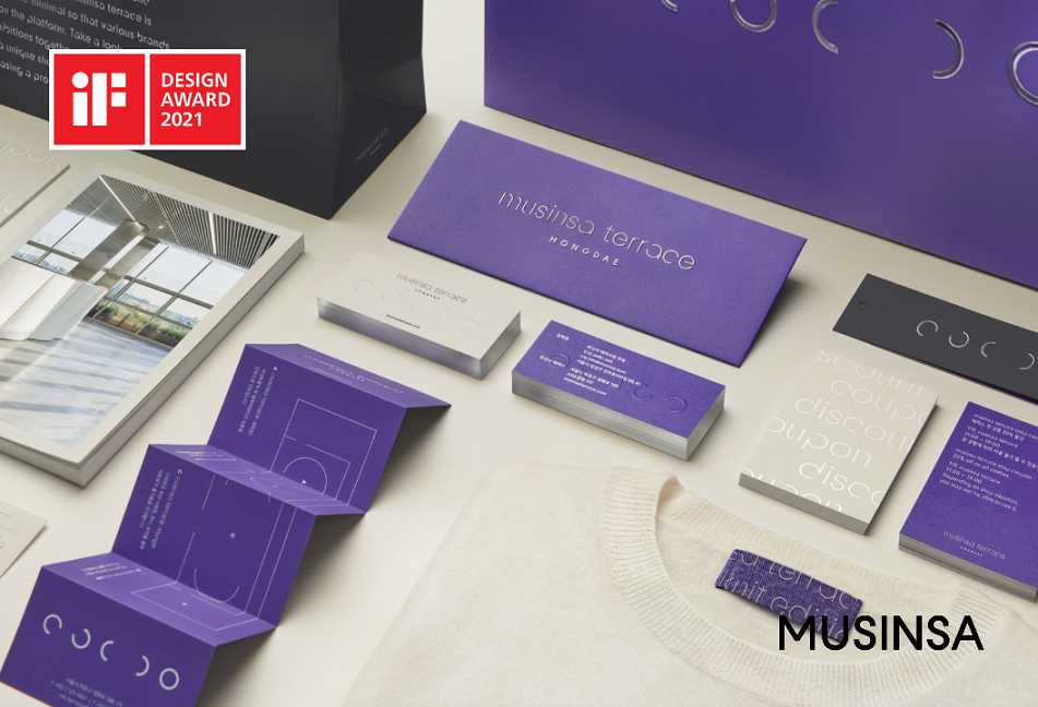 이번에 본상에 선정된 디자인은 패션 문화 복합 공간 ‘무신사 테라스’, 한정판 마켓 ‘솔드아웃’, 무신사 신규 입사자를 위한 웰컴키트 ‘위 아 무신사’의 기업 브랜딩이다.