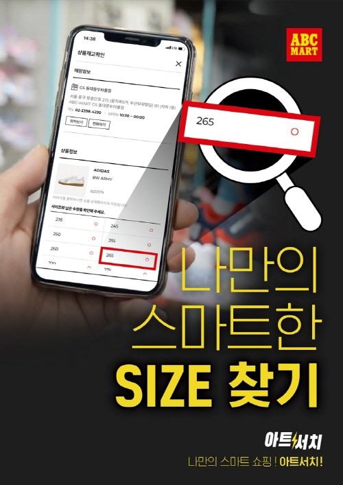 ABC마트코리아(대표 이기호)가 비대면 쇼핑 서비스 강화를 위해 매장에서 간편하게 재고 확인이 가능한 아트서치 서비스를 런칭했다.