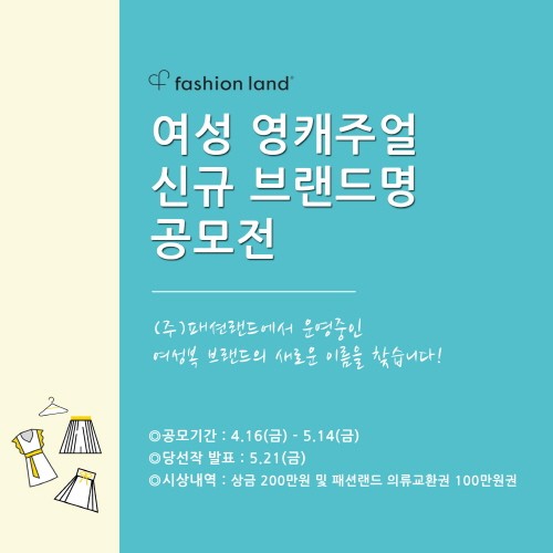 패션랜드(대표 최익)가 런칭을 준비하는 여성 영캐주얼 브랜드의 네이밍 공모전 이벤트를 진행한다.