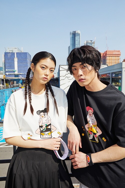 60년 헤리티지 ‘엘레쎄’ 화보 무드를 만화적 표현으로 유니크하게 풀어낸 그래픽디자인이 특징이며 밝고 웨어러블한 아이템으로 제작되었다.