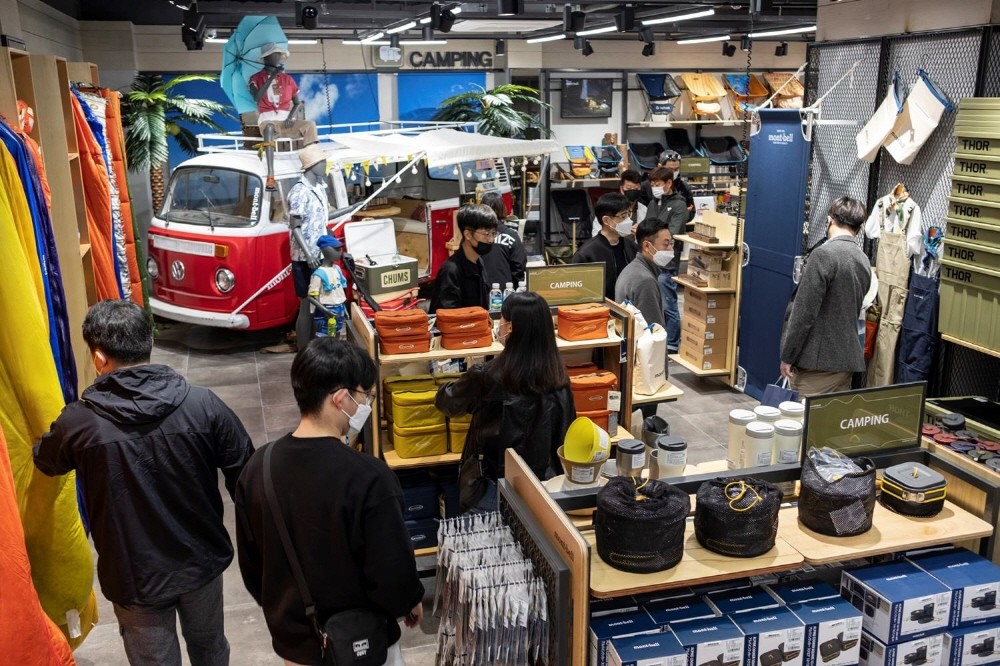 매장 안에는 실내 클라이밍, 자전거 트랙 등 실제 분당스퀘어에서 판매되는 제품으로 구성한 아웃도어 체험 공간도 마련했다. 또 매장 내 실제 판매 물건으로 만들어진 캠핑 콘셉트의 포토존을 설치해 엔터테인먼트적 요소를 강화했다.