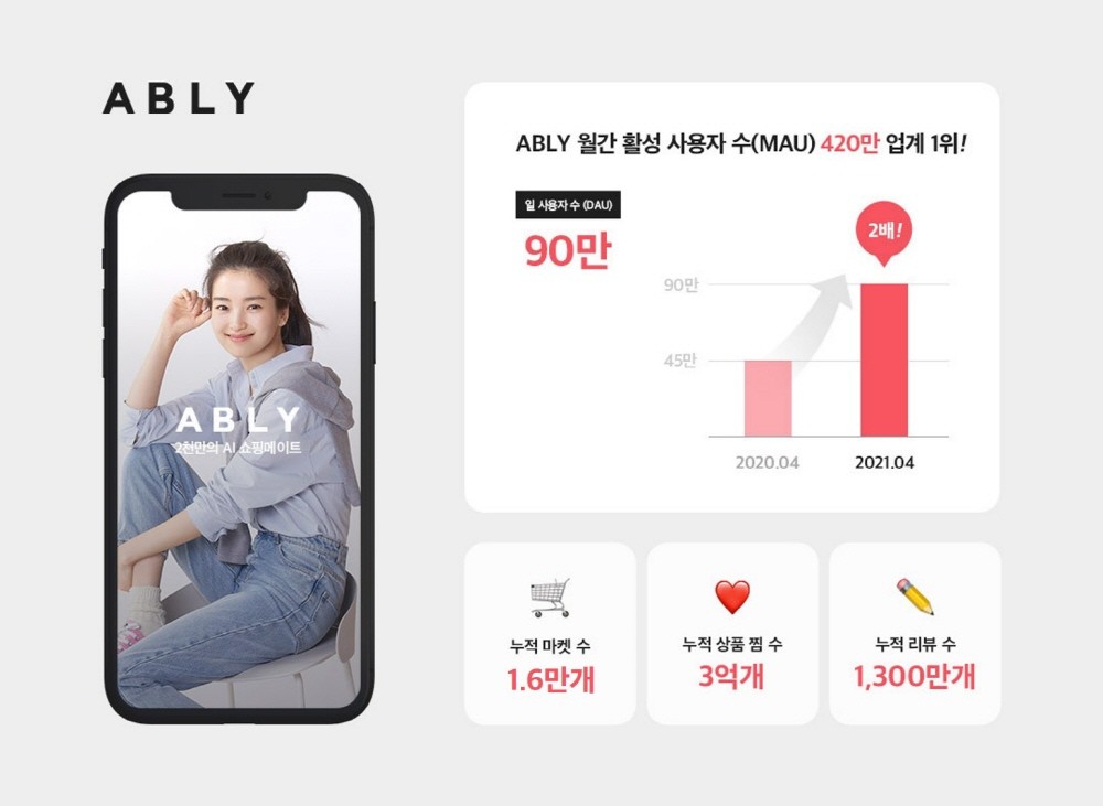 한편 에이블리는 2018년 3월 서비스 런칭 이후 3년 만에 △누적 다운로드 수 2,000만건 △누적 거래액 6,000억 △MAU 420만을 기록하며 온라인 패션 플랫폼 시장에서 가장 빠른 성장세를 보이고 있다.