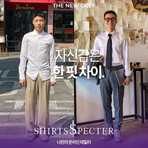 이번 화보는 ‘셔츠스펙터’의 셔츠 제작 전문 기술력과 노하우를 바탕으로 가장 잘 맞는 셔츠 핏과 스타일링에 대한 소비자의 고민을 함께 해결하고 자신감을 심어 주고자 패션 메이크오버 전문 브랜드 ‘더뉴그레이’와의 협업으로 기획됐다. 메이크오버 캠페인 진행을 위해 지난 4월 ‘더뉴그레이’의 SNS를 통해 사연을 공모했고 특히 2030세대에서 높은 경쟁률이 나타났다.