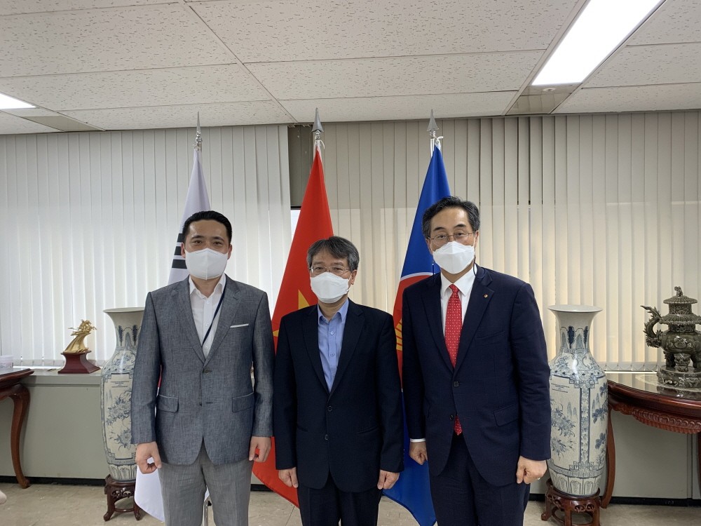 김기준 한국섬유산업연합회 부회장이 산업통상자원부 송주호 과장과 함께 지난 9월 9일 응웬 부 뚱 주한 베트남 대사를 예방하여 최근 코로나19 확산에 따른 베트남의 봉쇄조치로 현지 진출 섬유업계의 애로와 건의사항을 전달하였다.