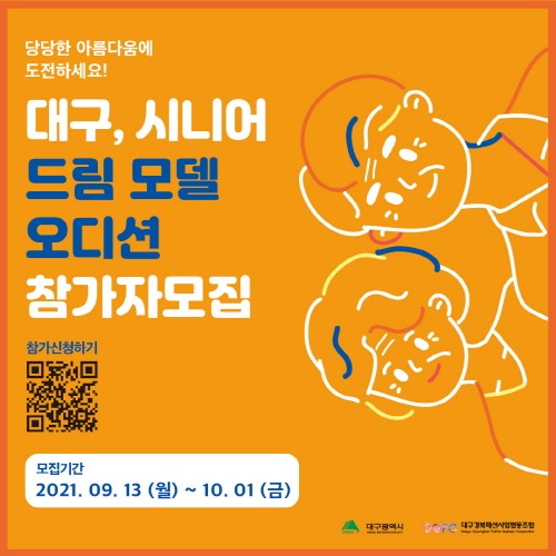 대구경북패션사업협동조합(이사장 정순식)이 시니어 세대의 건강하고 아름다운 모습을 유지하기 위해 전문 모델의 기회를 제공하고자 10월 1일까지 대구의 액티브 시니어들을 대상으로 하는 대구 시니어 드림모델 오디션 참가자들을 모집한다.