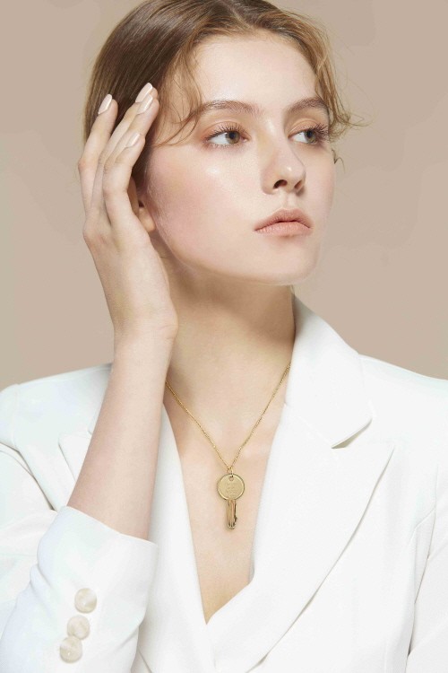 2차 상품은 추동 시즌 의상에 포인트를 줄 수 있도록 모던하고 고급스럽게 디자인한 ‘18K KEY 레터링 목걸이와 함께 구입 가능한 스와로브스키 진주 비드 목걸이.