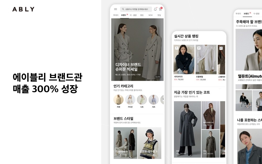에이블리의 브랜드 전용관이 오픈 1개월 만에 입점 디자이너 및 스트릿 브랜드의 성장세가 두드러지고 있다.