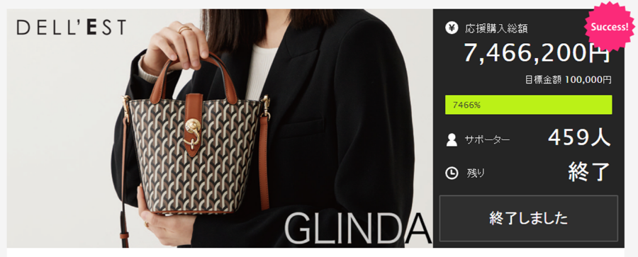 핸드백 브랜드 ‘델레스트’가 코로나19의 어려운 시기에도 일본 최대 규모의 크라우드 펀딩 플랫폼 마쿠아케에서 글린다 토트백 제품으로 누적 펀딩 7466%를 돌파했다.
